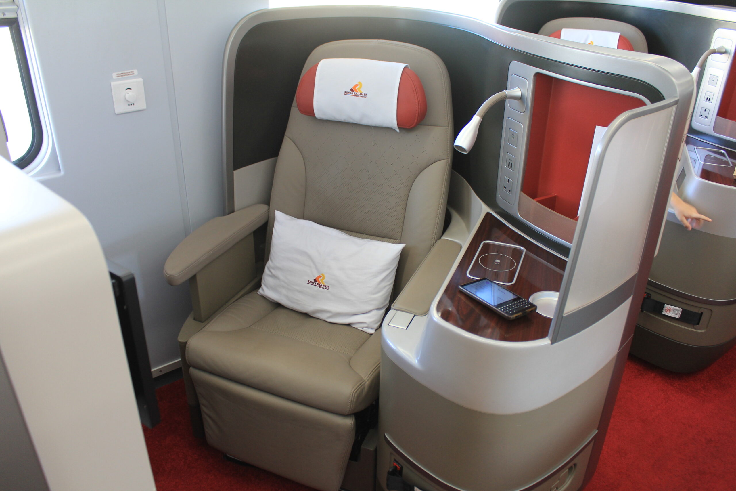 席種は3つあって、購入は60日前から可能になります。専用の予約サイトを使うとケニアのモバイルマネーを使える人であれば支払いまでオンラインで完結できます。今回選んだ一番上のプレミアムクラスは一便あたり24席しかないので事前購入は必須です。シートアレンジは通路を挟んで左右に一席ずつなので、結果的に全席窓際。電動で座面がフラットになる点は飛行機のビジネスクラスと同様です。購入時に席の指定ができるところも飛行機みたいでした。